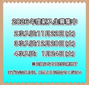 以降、月1回ずつ入試を実施し2月以降は個別でのご案内となります。